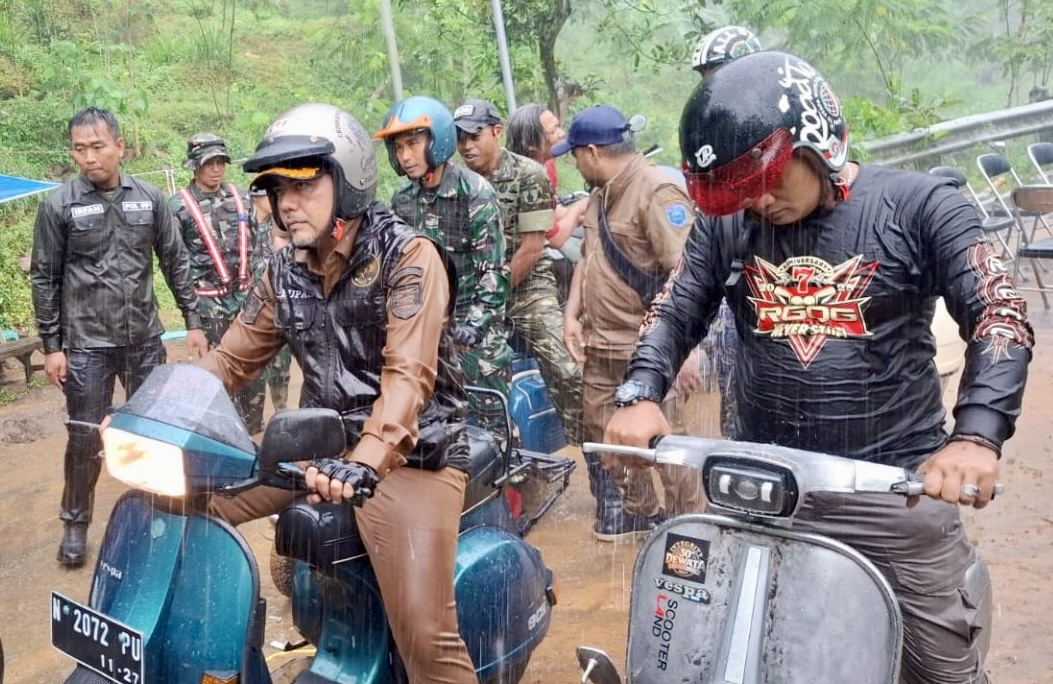Ia juga menyinggung kondisi saat peninjauan yang diguyur hujan. Meski demikian, rombongan tetap melanjutkan perjalanan menggunakan Vespa bersama Forkopimda.